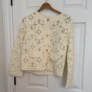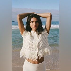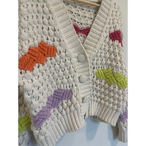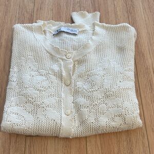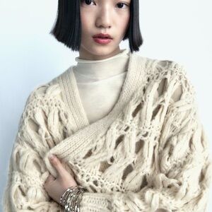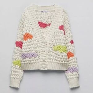 Crochet Knit Cropped Cardigan Zara Off-White Colourblock Slouchy Cardigan