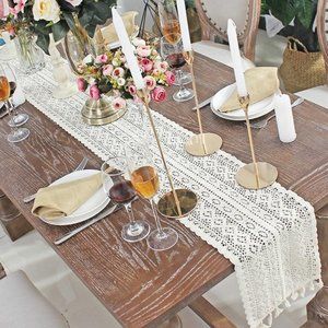 Elevate your dinning experience with our Crochet Lace Table Runner.Uniquely hand knitted,made of embellished tassels with eye catching openwork, this Table Runner will add a chic and elegant look to your table setting.
