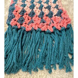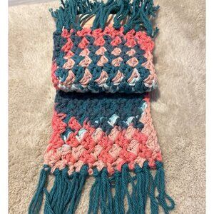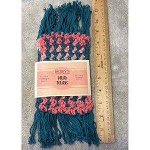 Crochet Mug Rugs Set Of 2 Cotton Coasters Teal Pink Fringe 4 x 6" without Fring