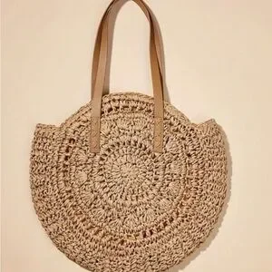 This crochet tote bag features an intricate crochet pattern, offering a bohemian and natural aesthetic. The handles add a touch of elegance, making it perfect for casual summer outings or beach days. Has top zipper closure