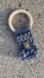 3.3" wooden ring. Wooden button. 2.25" by 9" Loops and Threads Impeccable yarn in grey tweed. 100% acrylic.