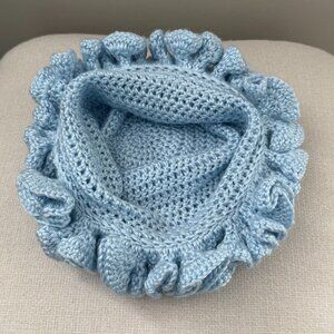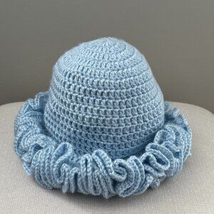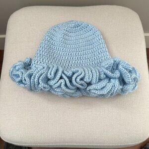 Crochet Ruffle Edge Hat Toque Light Blue