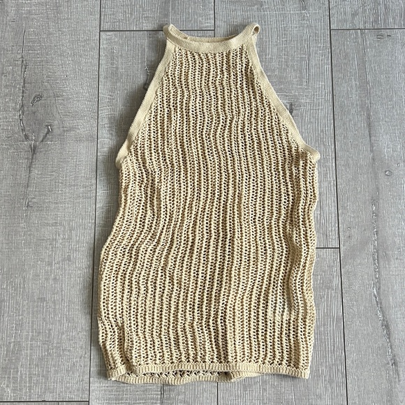 Closet sale price! Never been worn. Thick style crochet fabric. Beautiful weave. High empire neck line.