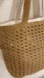 Stylish crochet tote bag in tan with lace detail. Perfect for casual outings.
