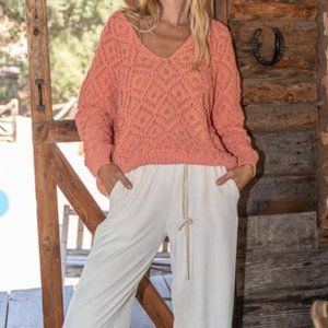Beautiful knit that will be admired by all. The sweater is a gorgeous color and can be worn slouched, off one shoulder for a relaxed look.