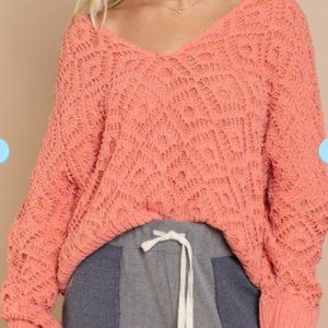 Crochet and Knitted Papaya V Neck Sweater