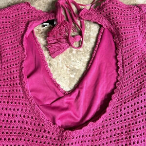 Crochet dress,pink Sm,cottagecore, tassels,fairy,whimsy,coastal,feminine,NWT