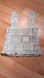 This charming crocheted top features a delightful granny square patchwork design that is lined in the front. The soft pastel hues of green, blue and pink with the ruffled hem add a touch of elegance to any outfit. Perfect for casual outings or a day at the beach.