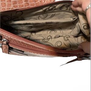 Elevate your style with this chic crocodile embossed shoulder bag. The elegant tan color complements any outfit, making it a versatile addition to your wardrobe.