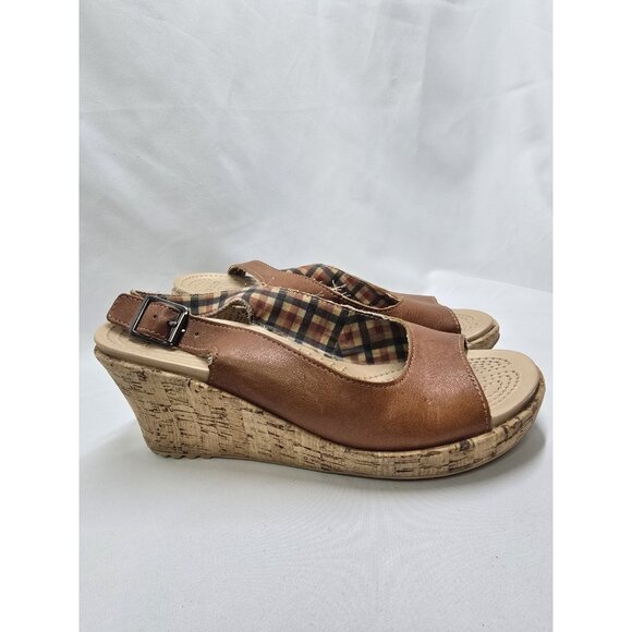 Crocs A Leigh Brown Leather Cork Wedge Heel Slingback Sandal Shoes Women’s Sz 8
