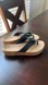 Crocs A Leigh Flower Leather Flip Flop Sandal Cork Platform Wedge Black Size 10