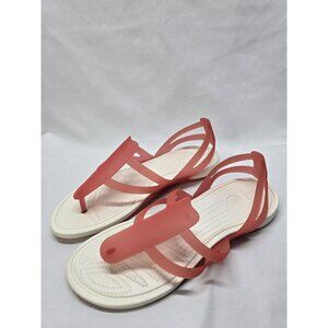 Crocs Adrina Pink/ White Womens Size 10 Strappy Thong Sandals