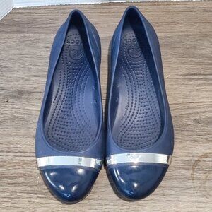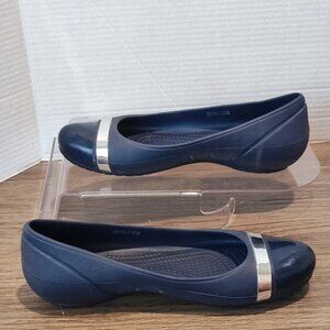 Crocs Ballet Flats Sz 8 Navy blue with chrom Rubber Comfort Ballerina Shoes