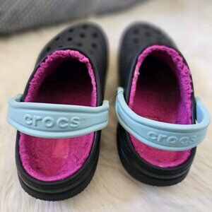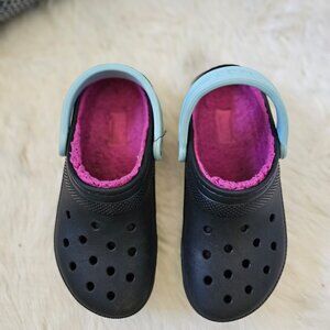 Crocs classic with cozy fleece lining, size M5/W7. Comfortable, warm, and perfect for indoor or outdoor use. Pre-owned, in good condition.