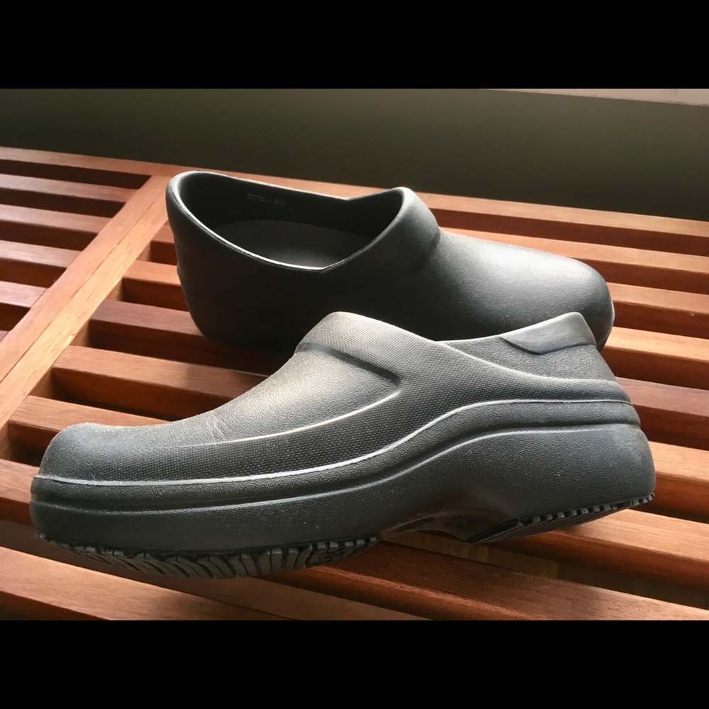 Crocs non slip black clogs in size 7.