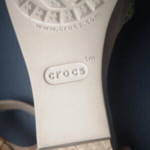 Crocs Dual Comfort Ladies Size 9 Purple Lime Yellow White Wedge Heel Sandals