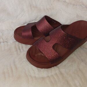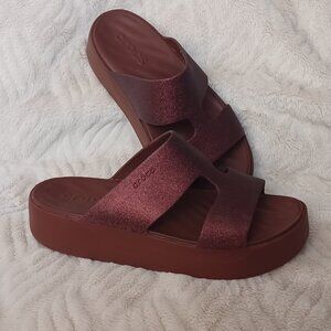 Genuine Crocs Getaway H-strap glitter sandals. Color called "Clay" (they are a bronzy-brown).