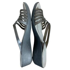 Crocs Iconic Comfort Isabella mini-wedge Black / Smoke slide sandals size 10 jelly translucent