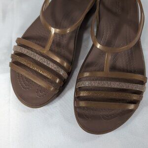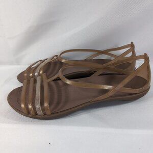 Crocs Isabella Jelly Flats 202465 Sandals Tan Gold Bronze Women's US 7 Strappy