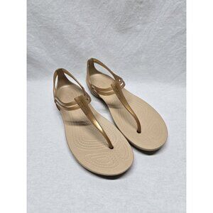 Crocs Isabella Sandals Tan Gold T-Strap Jelly Thong Women Size 6