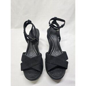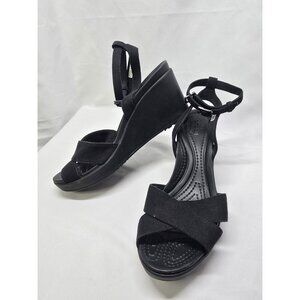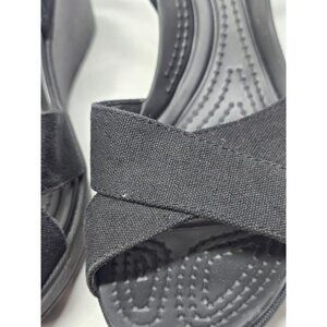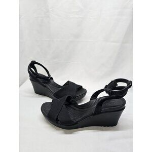 Crocs Leigh II Cross Strap Strappy Ankle Wedge Sandals Black Women’s Size 9