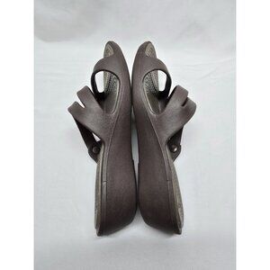 Crocs Patricia Wedge Strappy Slide Slip On Sandals Womens Size 7 Brown