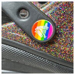 Crocs Platfirm Clogs Womens Sz 8 Classic Bae Pride Translucent Glitter