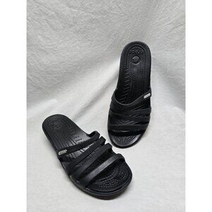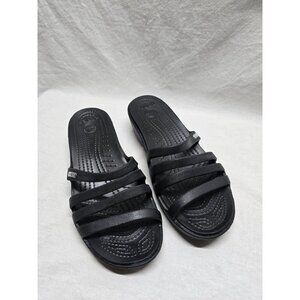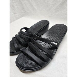 Crocs Rhonda Wedge Sandals Slip-On Strappy Slides Open Toe Black Women's Size 6