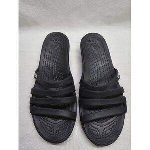 Crocs Rhonda Wedge Sandals Slip-On Strappy Slides Open Toe Black Women's Size 8