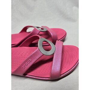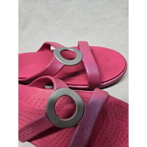 Crocs Sanrah Circle Slide Sandal Hot Pink Sparkle Women's Size 7 RARE