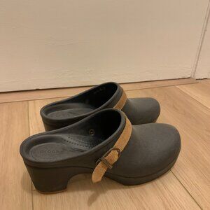 Crocs Sarah Clogs Dual Comfort Brown With Tan Suede Strap