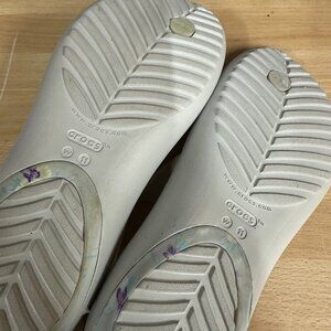 Crocs Serena Flip Sandals Women’s Size 11 White Floral Print Slingback Comfort