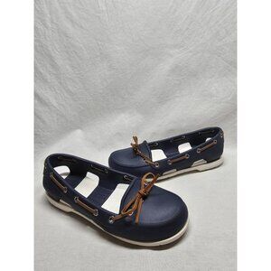 Crocs Shoes Womens Boatline Boat Blue Rubber Cutout Laces Flat Heel Slip On 6