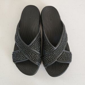 Crocs Sloane Embellished Slide Sandals Shoes Black Womens Size 6 Slides