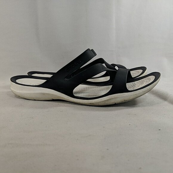 Crocs Swiftwater Sandals Women's US 7 Black White Iconic Comfort Strappy Shoes