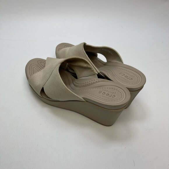 Crocs Wedge Sandal Crocs Leigh II XStrap Wedge Beige beach vacation Women Size 7