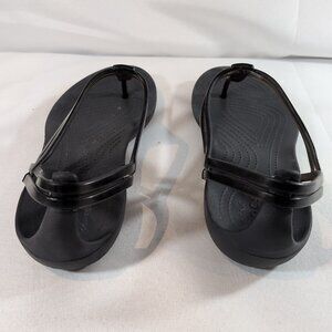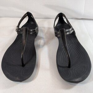 Crocs Women's Size 7 Isabella T Strap Black Sandals 202467 Thong Flats Shoes
