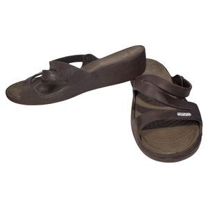 Elevate your everyday comfort with these Crocs Swiftwater slide sandals. Designed with a sleek brown synthetic upper and featuring the classic Crocs logo accents, these sandals embody a blend of simplicity and style. Ideal for casual occasions, the open-toe design allows for breathable wear, making them a perfect choice for those warmer days of spring, fall, or summer. The sandals come in a versatile size 9 with a medium width, ensuring a snug yet comfortable fit. The durable rubber outsole and insole offer stability and long-lasting wear, while the flat heel style keeps your feet at ease throughout the day. Whether you're heading to the beach or just lounging around, these slides are your go-to for effortless relaxation.
