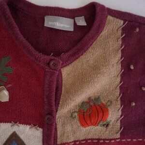 Croft & Barrow Burgundy Patchwork Pumpkin Birdhouse Cardigan Holiday Harvest S