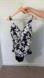 DESCRIPTION: The tummy control swimsuit! One Piece, V Neck, Ruched through the tummy sides. Black and white bold floral print contrasts against the solid black bottoms. Adjustable straps. Moulded attached cups.