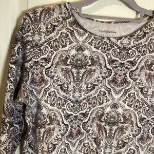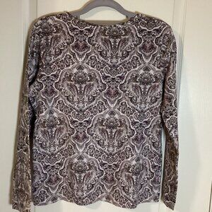 Croft & Barrow Women's Paisley Long Sleeve Crew Neck T-Shirt Top Size M Casual