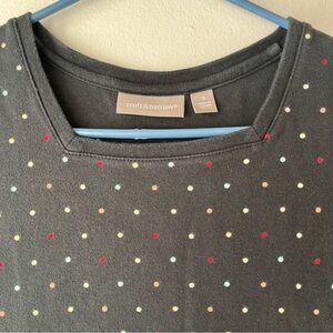 Croft & Barrow women’s short sleeve casual polka dot black square neck tee shirt