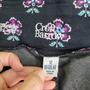 Croft & Barrow Women's Black Pink Floral The Effortless Stretch Cropped Pants 12
