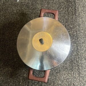 Super cute vintage saucepan measuring 8” diameter with lid. Original lid with worn handle.