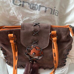 Cromia leather bag from Italy. Stitching..feathers..Mirrors..this bag has it all!! Great condition! Dust bag included!