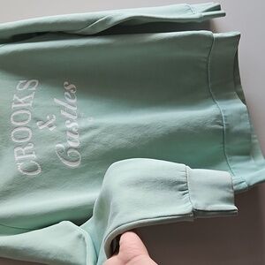 Light green crewneck with bold Crooks & Castles print. Casual and trendy.