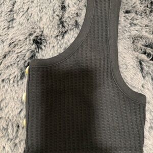Grey crop top with round neck, 3 front buttons and thin straps. Excellent conditions.