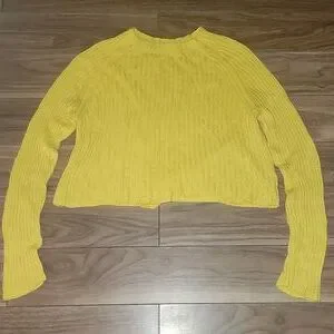 Bright yellow ribbed sweater with long sleeves. Lightweight knit for comfortable all-day wear. Crop top silhouette with a relaxed fit. Easy to style for casual looks.