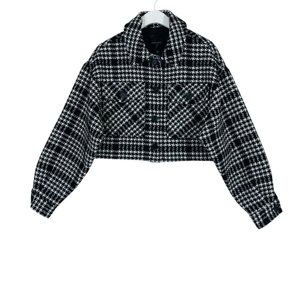 Crop short jacket coat bouclé Puff Sleeve black & white SZ small DYNAMITE