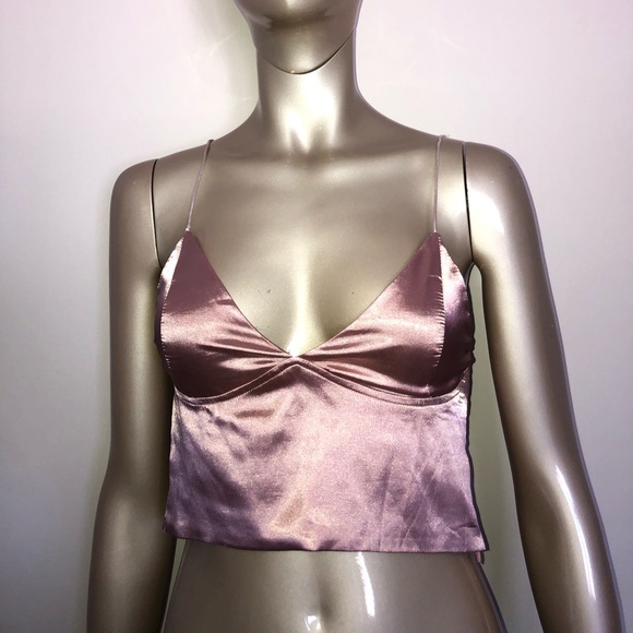 Peach colour Satin crop tank with opening zip on the side size sx
